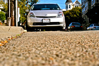 We explored motion in many different ways. First we turned out all of the lights and shone white and colored lights, shaping them into figures, letters and tracing people's bodies. I set my shutter speed very low, and allowed the camera to get the full image. Another thing we did is shaking the camera to blur it and make lights or people seem like ghosts. The last thing we did was panning. You pan by focusing on one object while the rest of the image is blurry. It is very hard to accomplish. To do panning, I went to the corner of California St./Divisadero, and tried to pan the cars, buses, bikes, people and scooters as they go by. Instead of being the simple 'say cheese' photo that many of us do, we choose to do something different by having yourself move the camera or the image you are trying to capture move. This allows the picture to have more depth, than just a straight on picture.